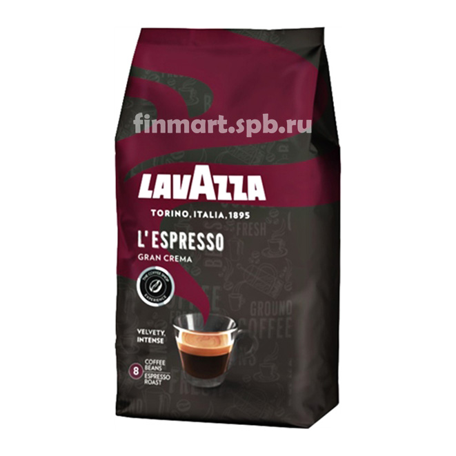 Кофе в зёрнах LavAzza L`espresso gran crema - неповторимый крепкий вкус с оттенками шоколада, смесь арабика 60% и робуста 40%.