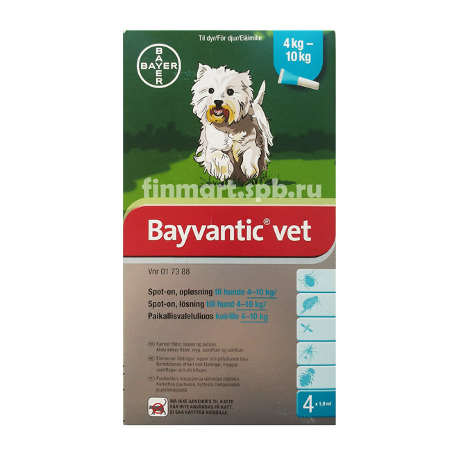 Средство против клещей Bayvantic vet - для собак 4-10 кг.