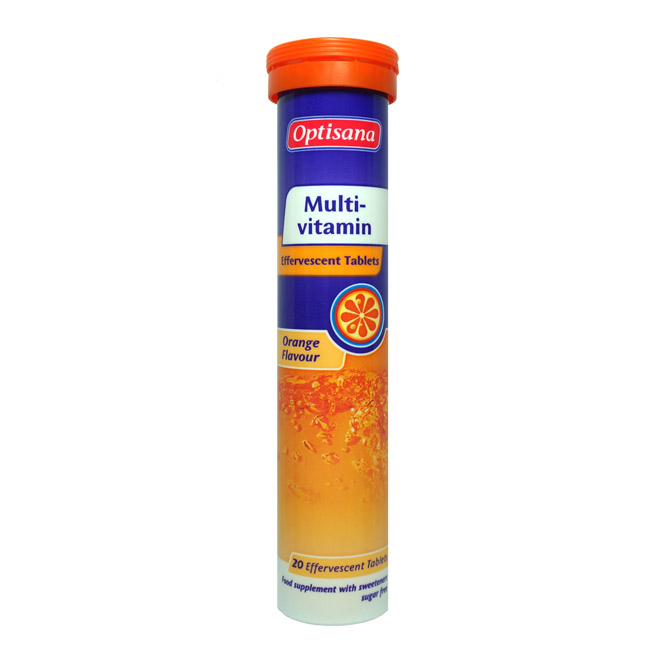 Поливитамины Optisana - в быстрорастворимых шипучих таблетках со вкусом апельсина.