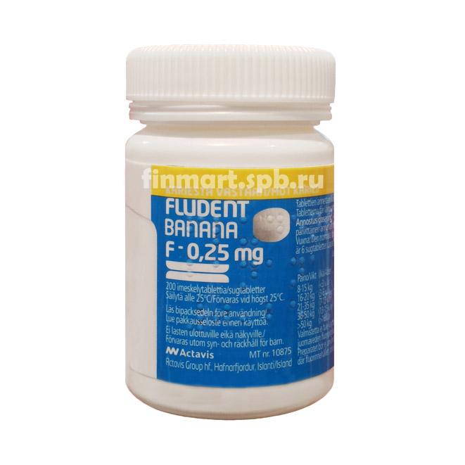 Fludent Banana 0,25 мг - фтор в таблетках для рассасывания, со вкусом банана.