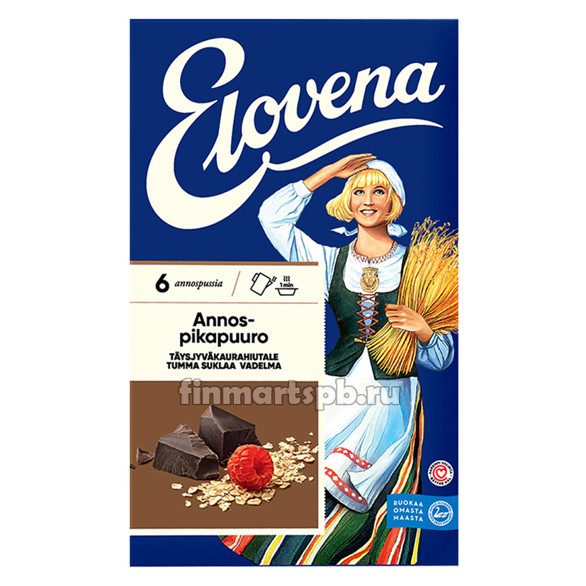 Каша геркулесовая тёмный шоколад с малиной Elovena - 6 порций.
