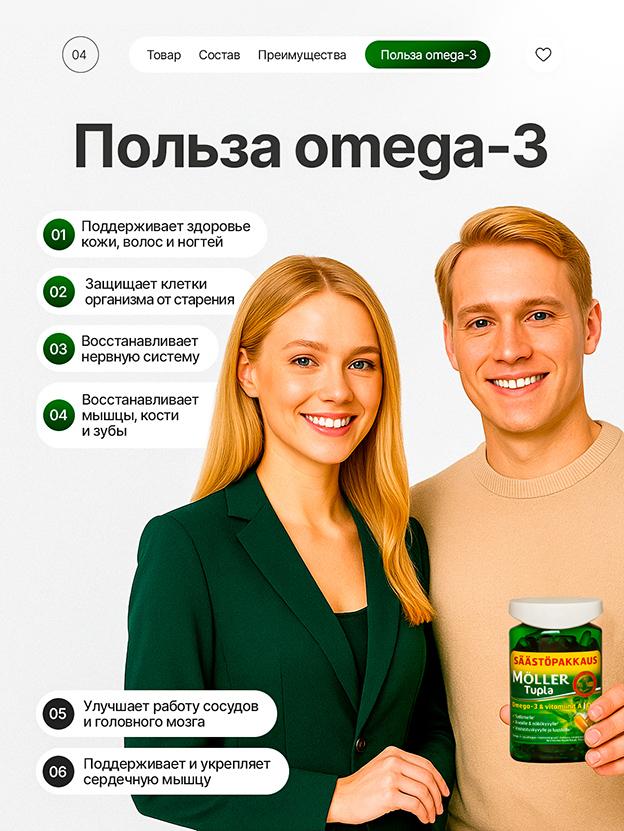 Купить Moller Tupla Омега-3 в Санкт-Петербурге можно с доставкой по городу и всей России. В наличии — оригинальная продукция из Финляндии.Моллер Тупла — состав и дозировки