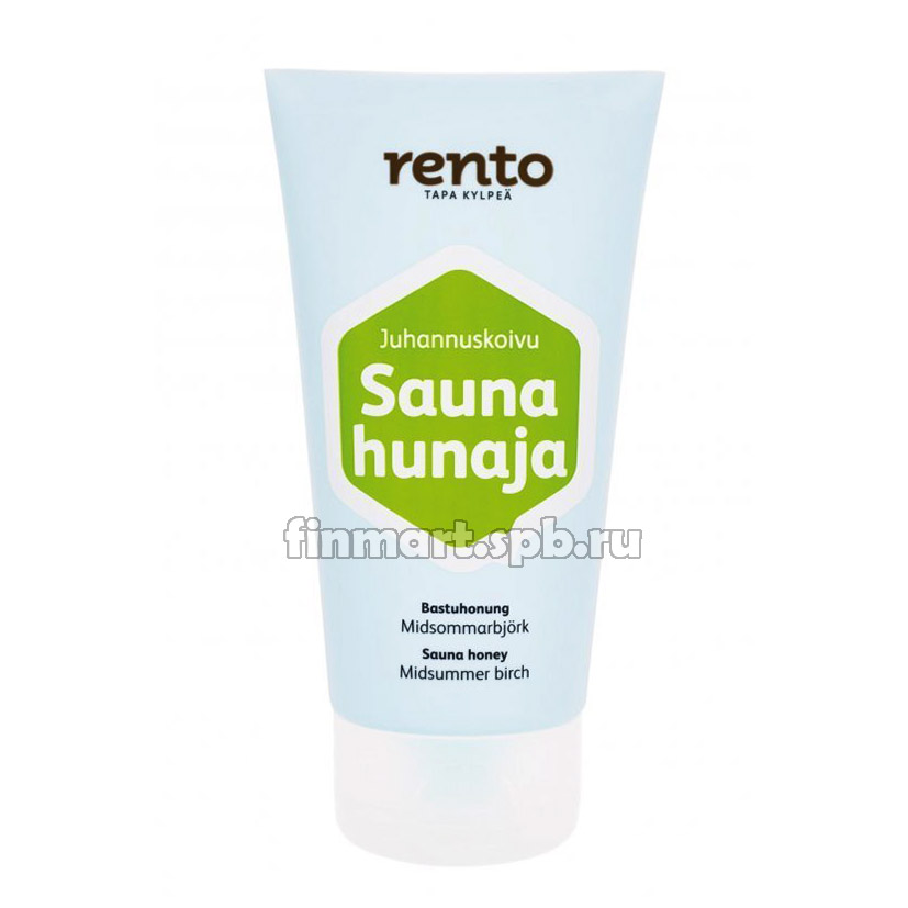 Мёд для сауны Rento Saunahunaja Juhannuskoivu (берёза) - содержит успокаивающий экстракт березовой коры, сохраняющий баланс влажности кожи.