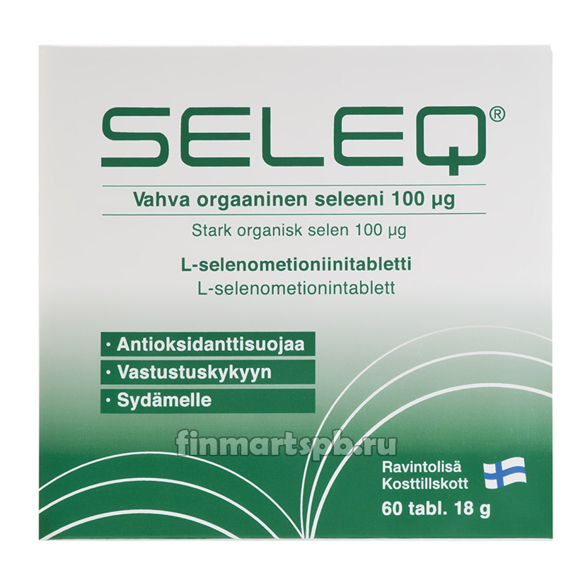 - Селен присутствует в составе таблеток Seleq® в хорошо всасываемой форме органического соединения L-селенометионина.