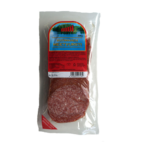 Portti kotimainen meetvursti - салями в нарезке, вакуумная упаковка.