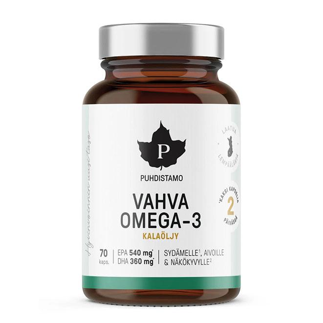 Puhdistamo Vahva Omega-3 — это препарат рыбьего жира в форме триглицеридов, предназначенный для восполнения запасов незаменимых жирных кислот и поддержки нормальной работы сердца, мозга и зрения.