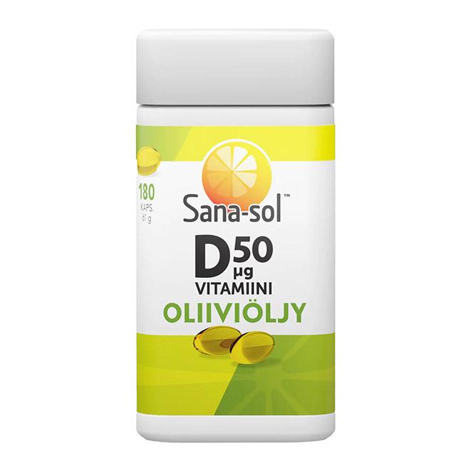 - Sana-sol Vitamiini D Oliivioly (Сана-сол Витамин Д на оливковом масле) 50 mkg 180 шт.