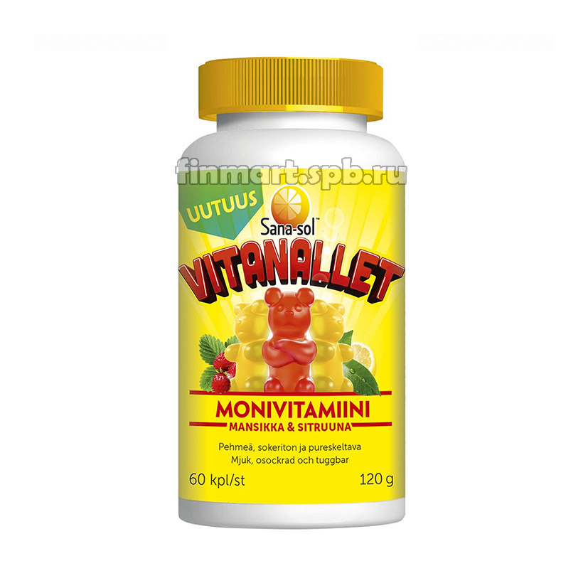 - Витамины Sana-sol Vitanallet (Сана-сол жевательные мишки, клубника-лимон) - 60 шт.