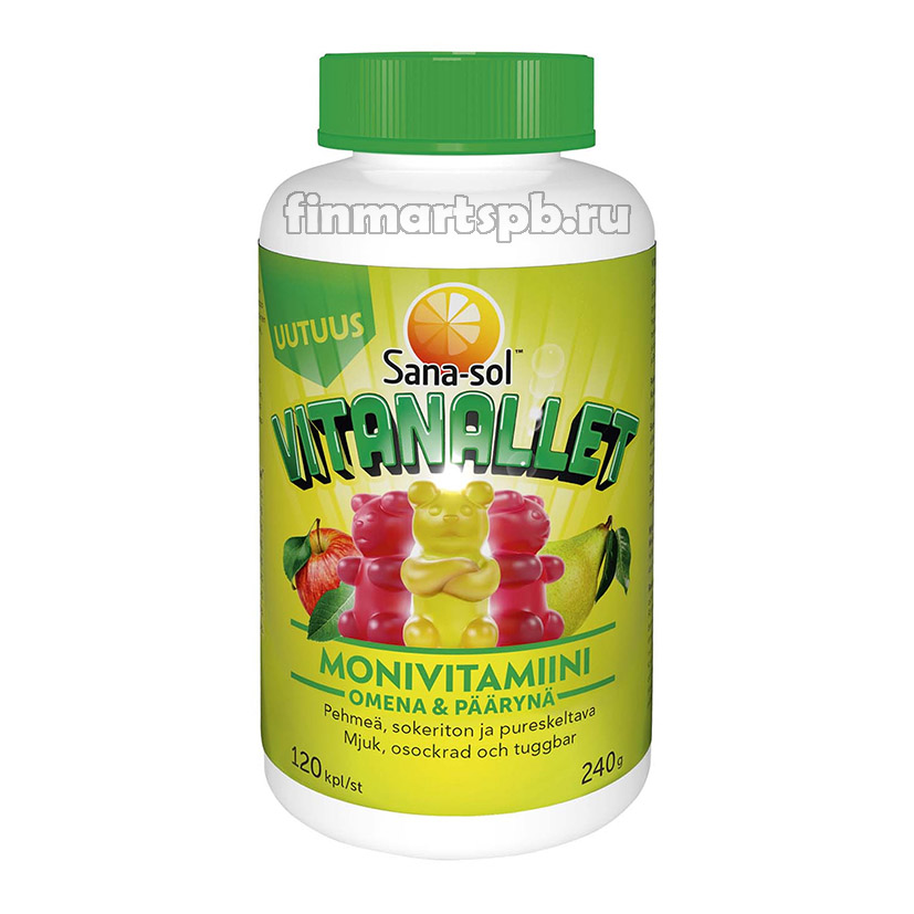 Поливитамины мишки Sana-sol Vitanallet (Яблоко, Груша) - 120 шт.